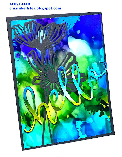 I have another bold Hello card to show you today using dies by Elizabeth Craft Designs and Hero Arts and a fun background I created with alcohol inks on EVO Paper by ETC Papers!